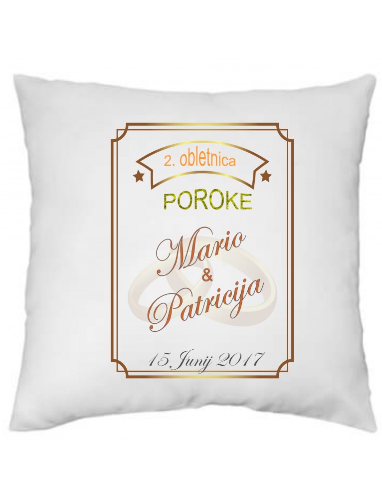 Blazinica, kjer se lahko po želji menja besedilo se pravi številka obletnice, imeni, ter datum.