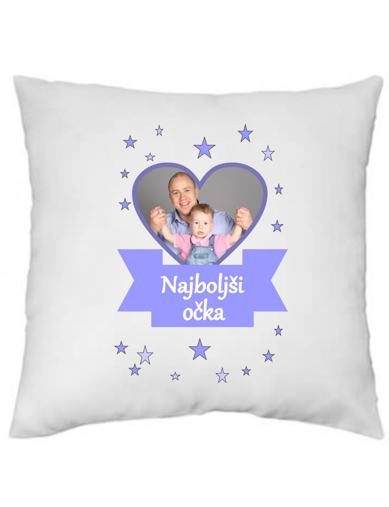 Na blazinici je napis: NAJBOLŠI OČKA ter fotografija v obliki srčka po želji.