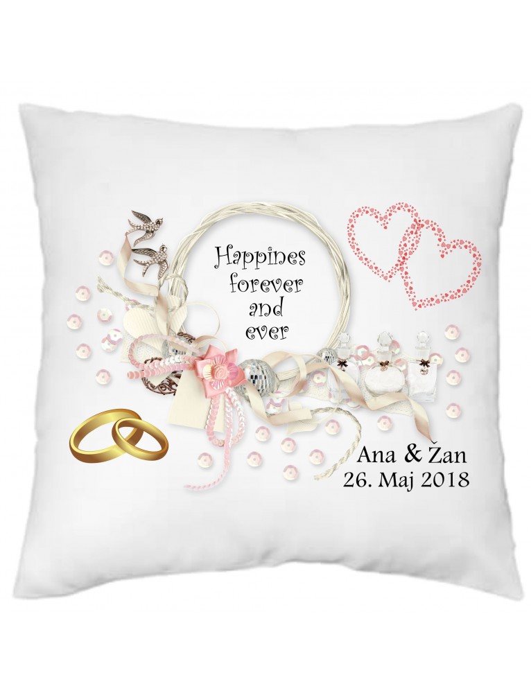 Blazinica z napisom: Happines forever and ever. Imeni in datum po vaši izbiri.