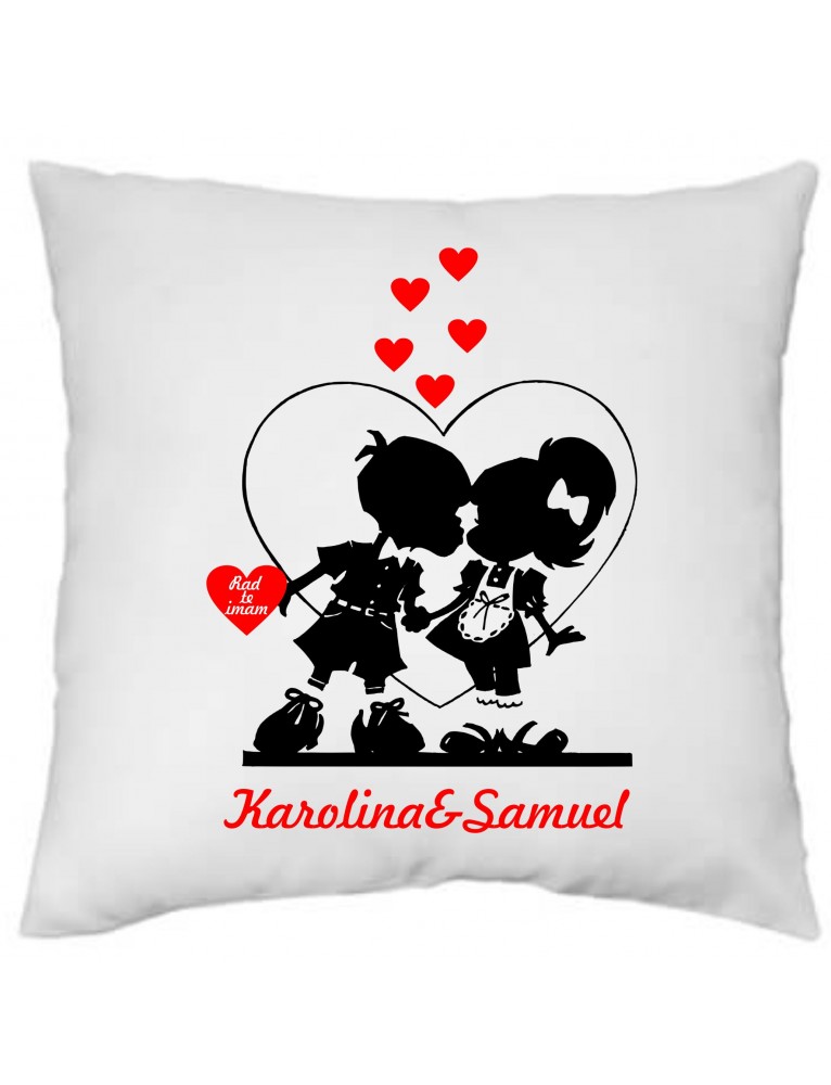 Blazinica z napisom: KAROLINA&SAMUEL (imeni po vaši izbiri) ter slikico dveh zaljubljencev.