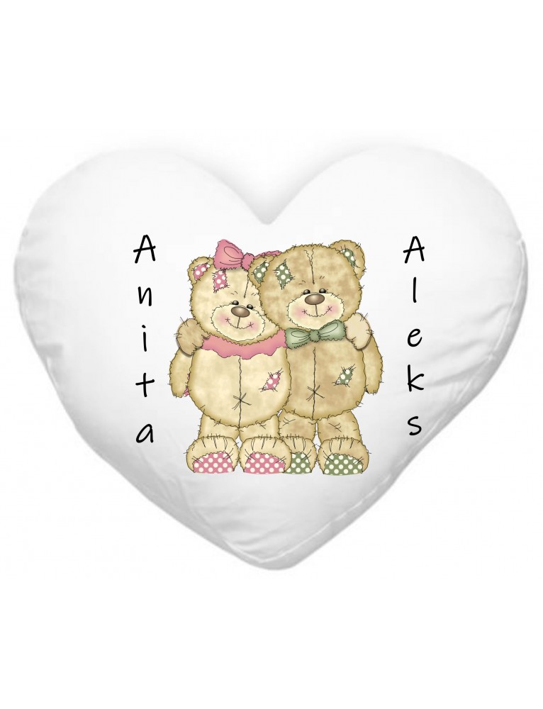 Blazinica v obliki srca z napisom: ANITA&ALEKS (imeni po vaši izbiri) ter slikico dveh prikupnih medvedkov